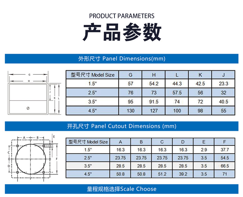 結構材料組成:透明PC面蓋,電膠木底座,可根據要求定制半透明蓋指針: